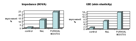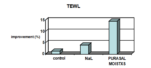 在本試驗(yàn)中顯示PURASAL® MOISTXS 也顯著降低了經(jīng)表皮的水分流失