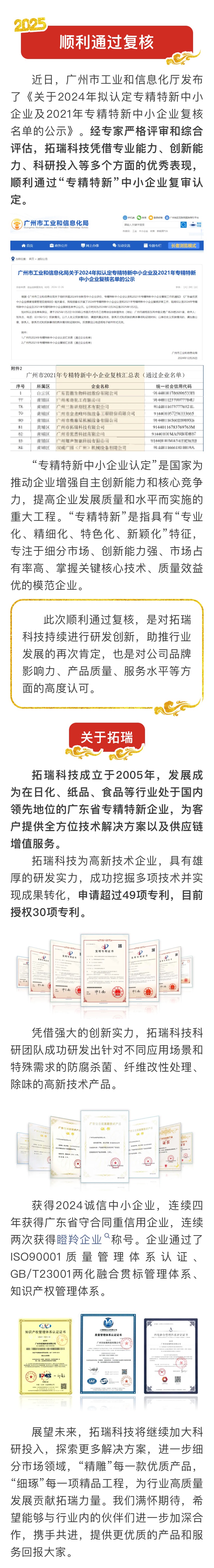 喜報(bào)|拓瑞科技順利通過(guò)“廣東省專精特新中小企業(yè)”復(fù)核評(píng)定